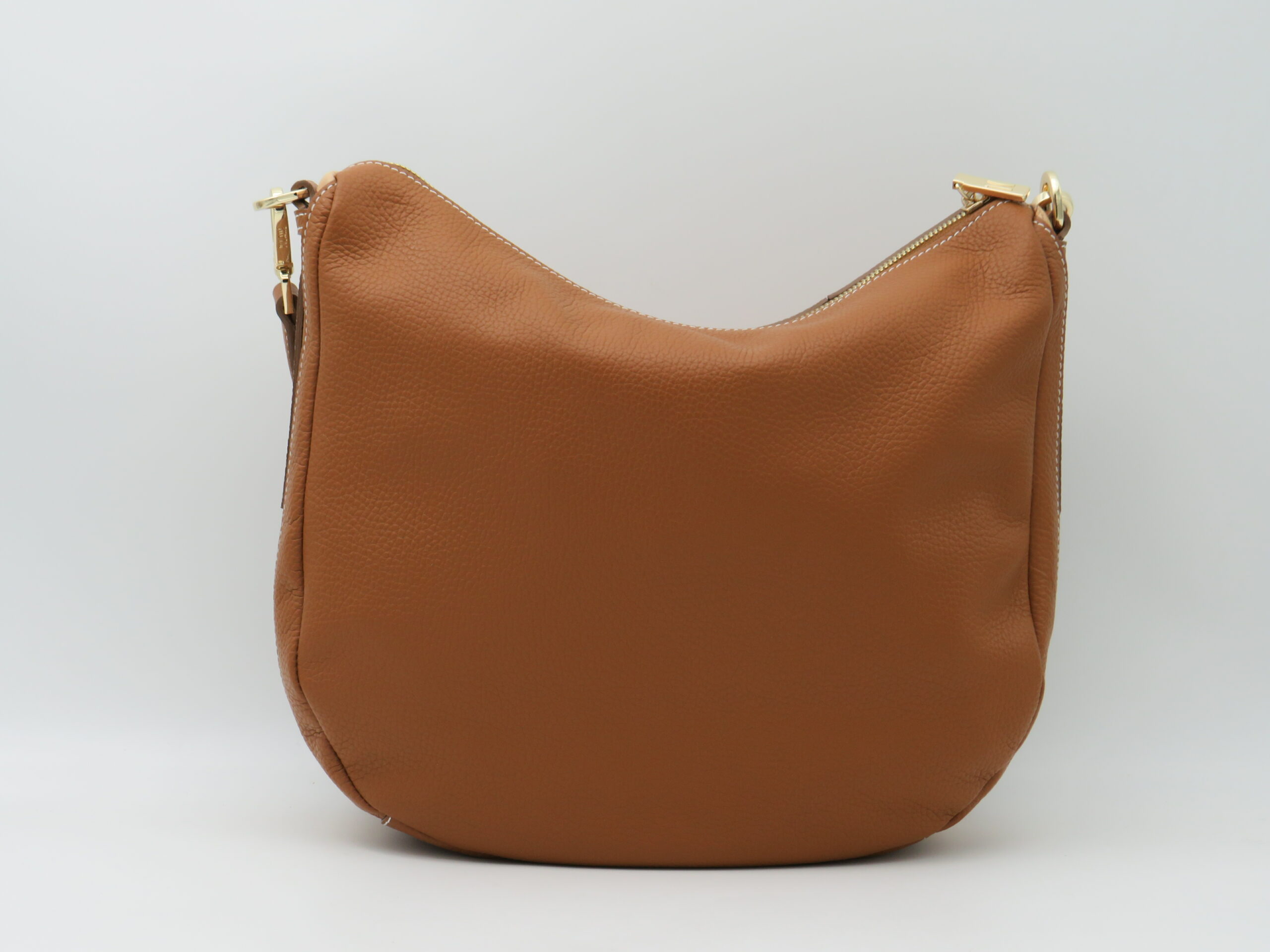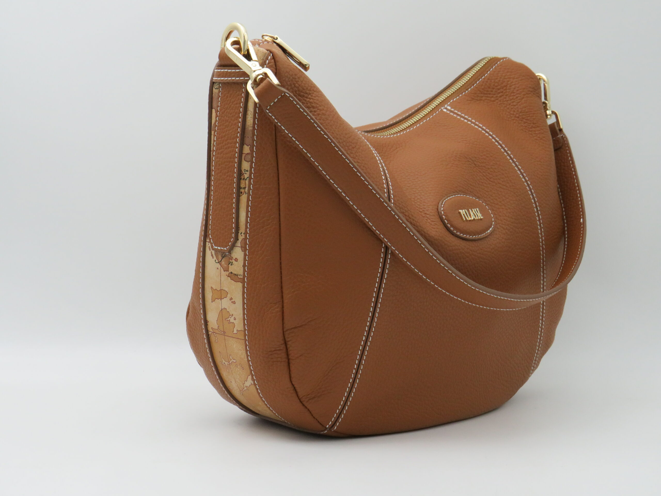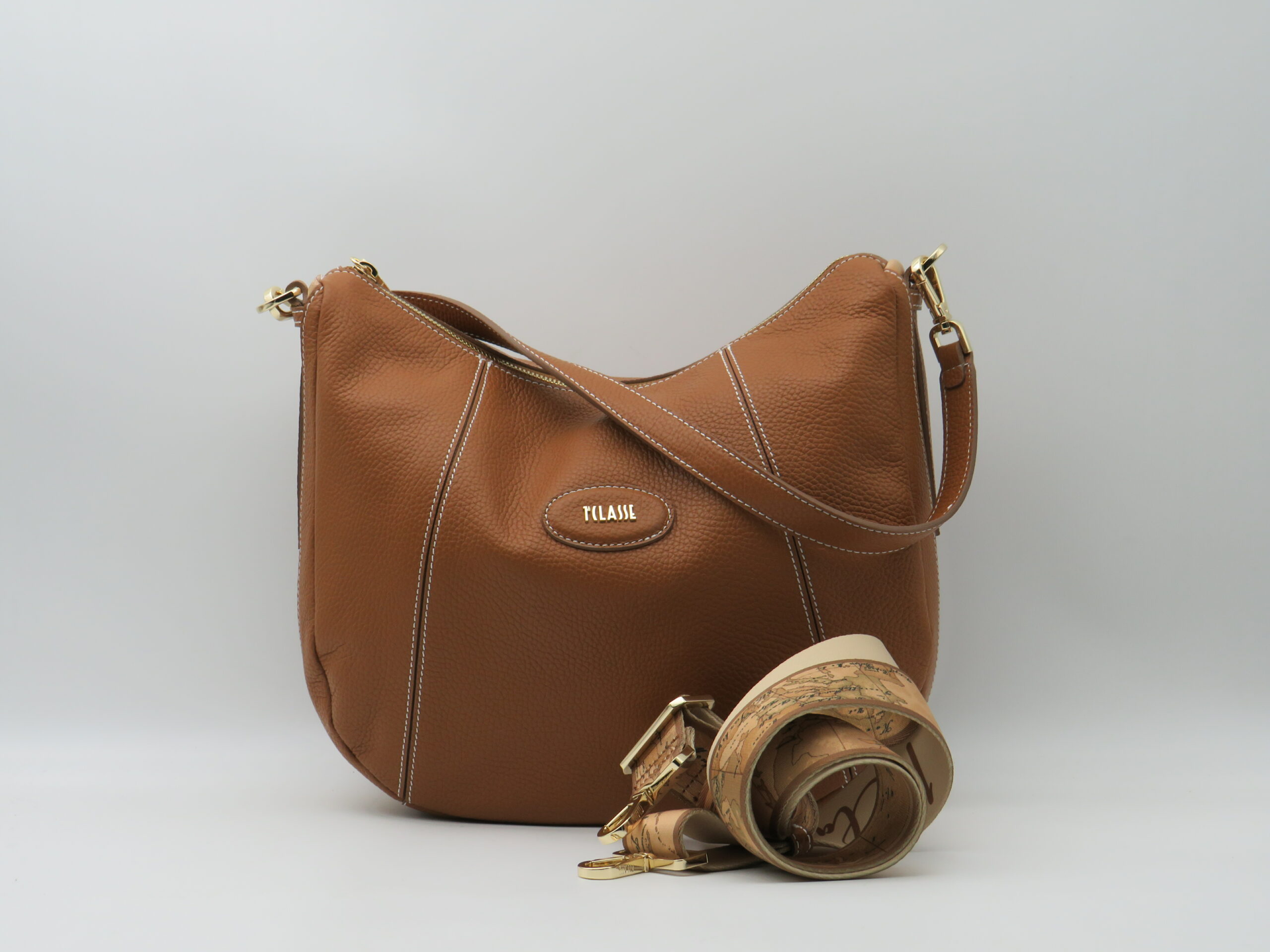 BORSA SOTTOBRACCIO MEDIA + TRACOLLA NASTRO GEO PELLE MARTELLATA MARRONE TABACCO LATERALI GEO