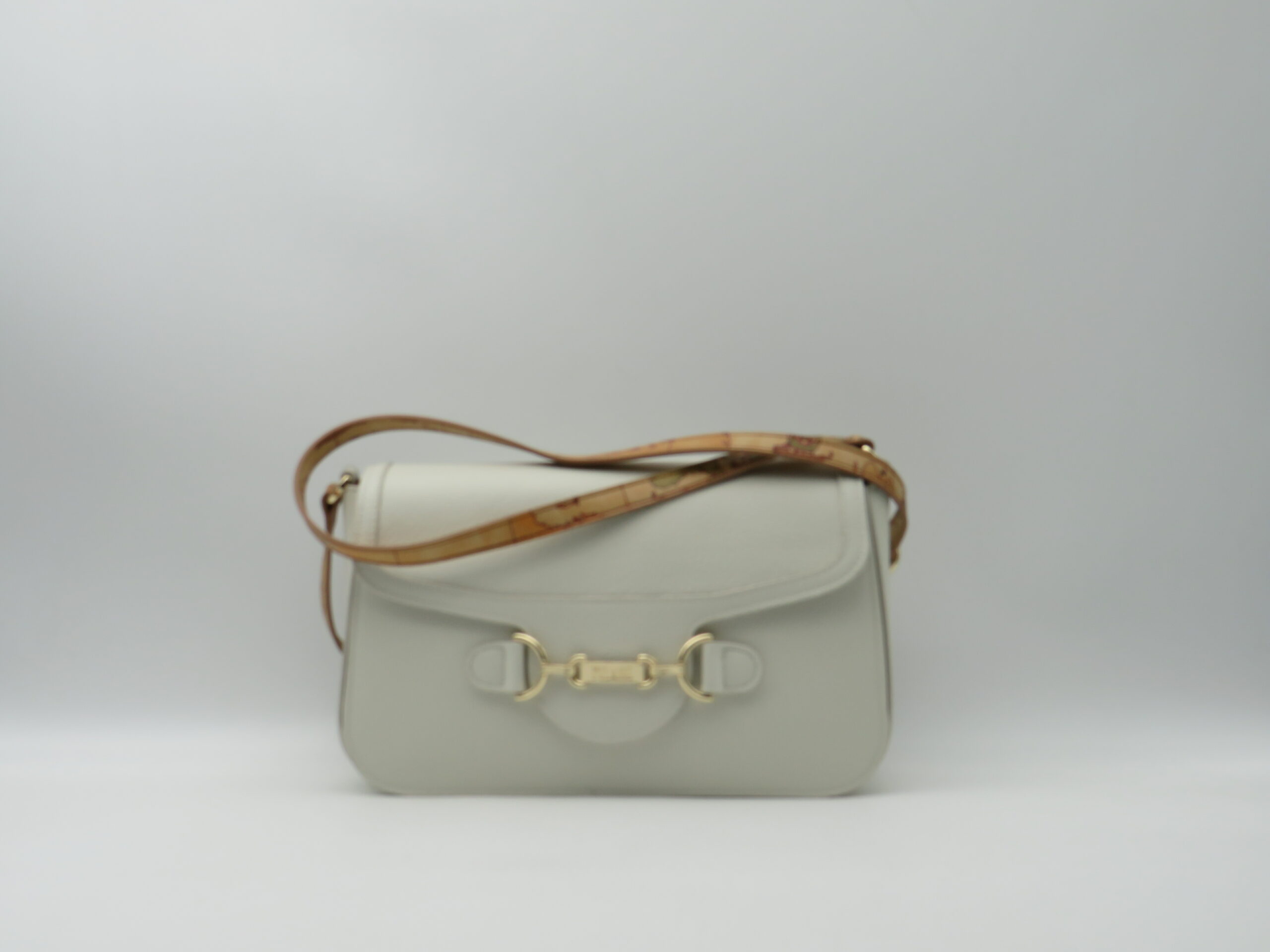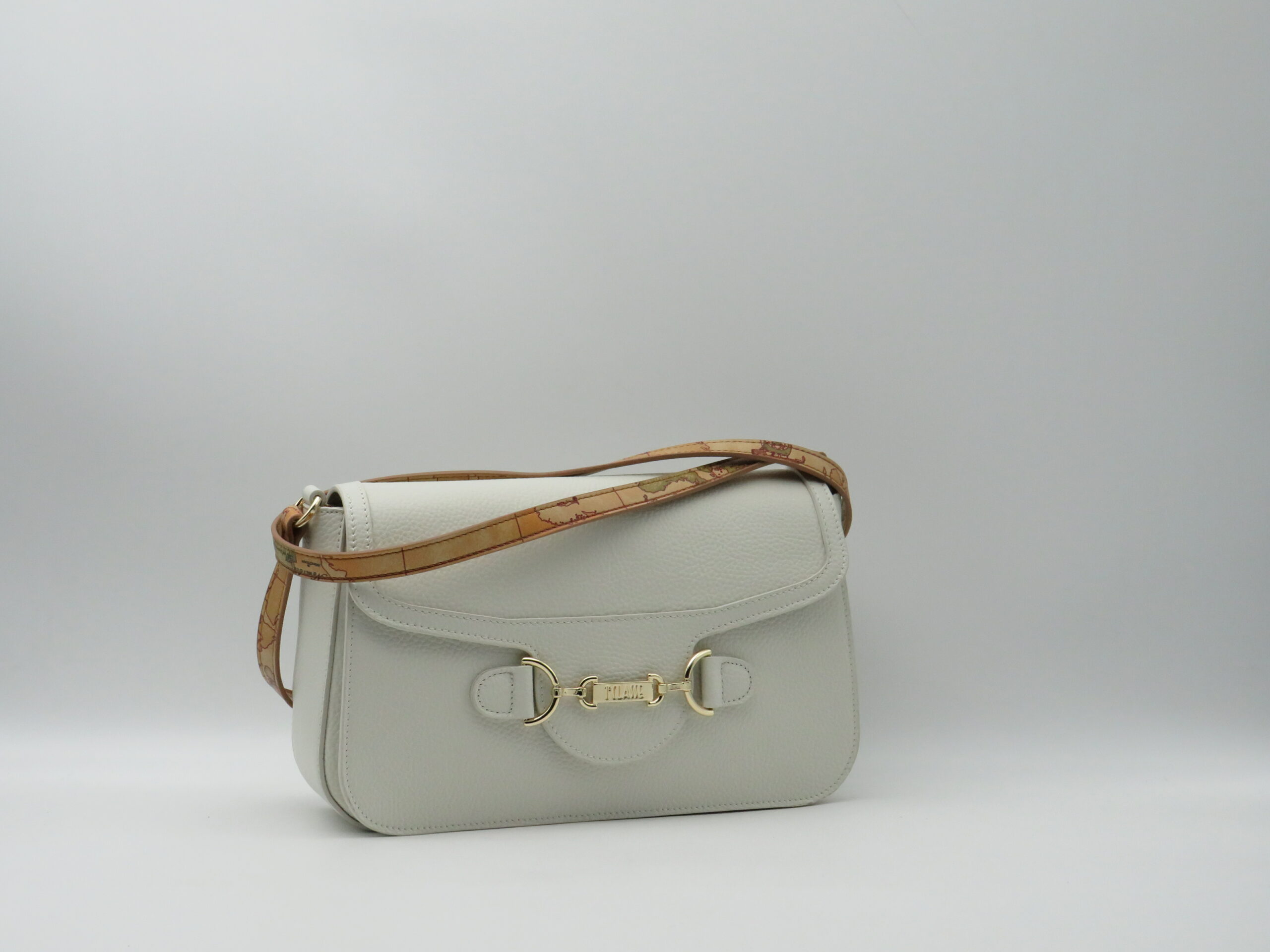 ALVIERO MARTINI 1’CLASSE TRACOLLA MEDIA CON PATTA E FIBBIE PELLE MARTELLATA BIANCO AVORIO