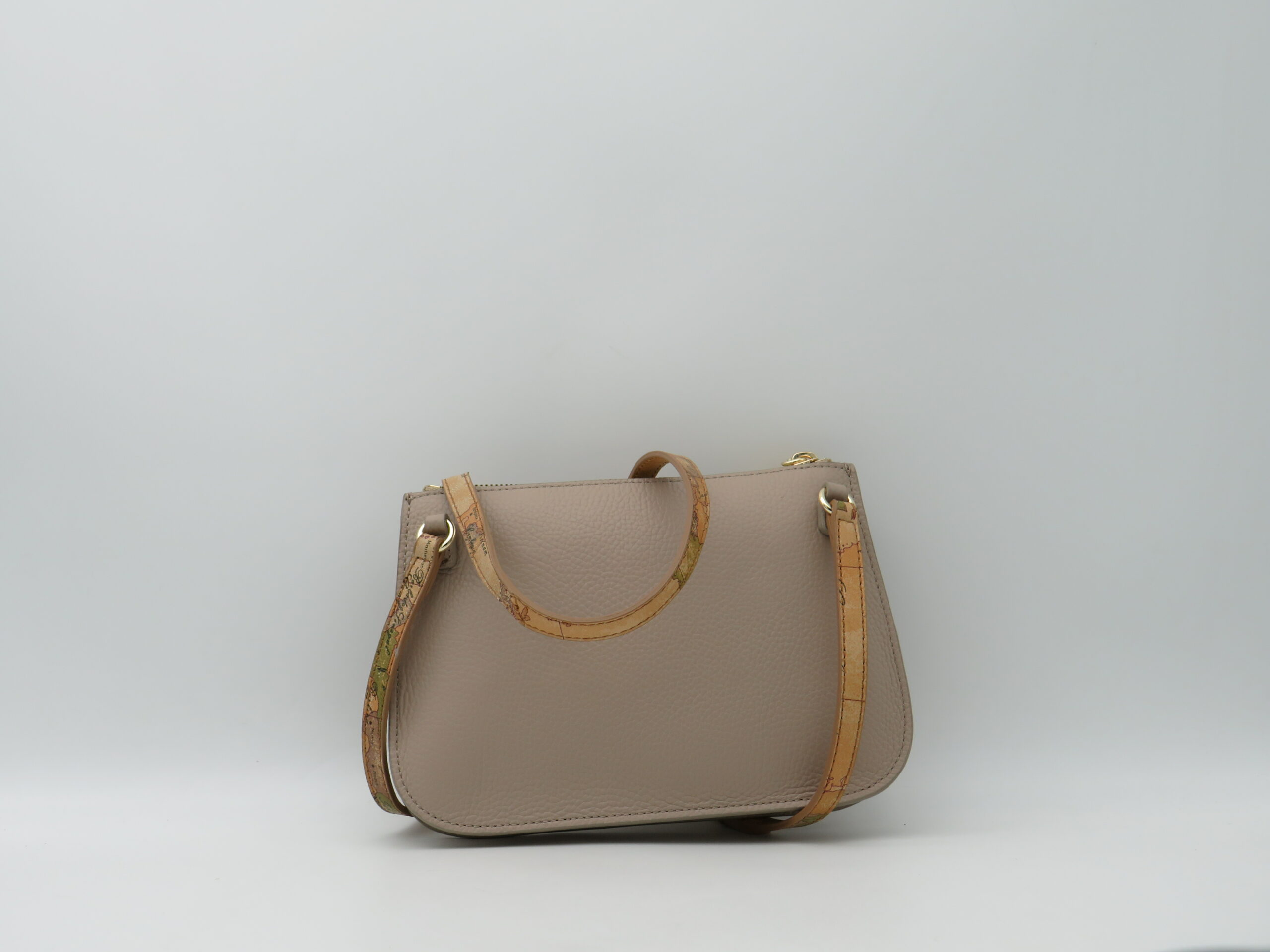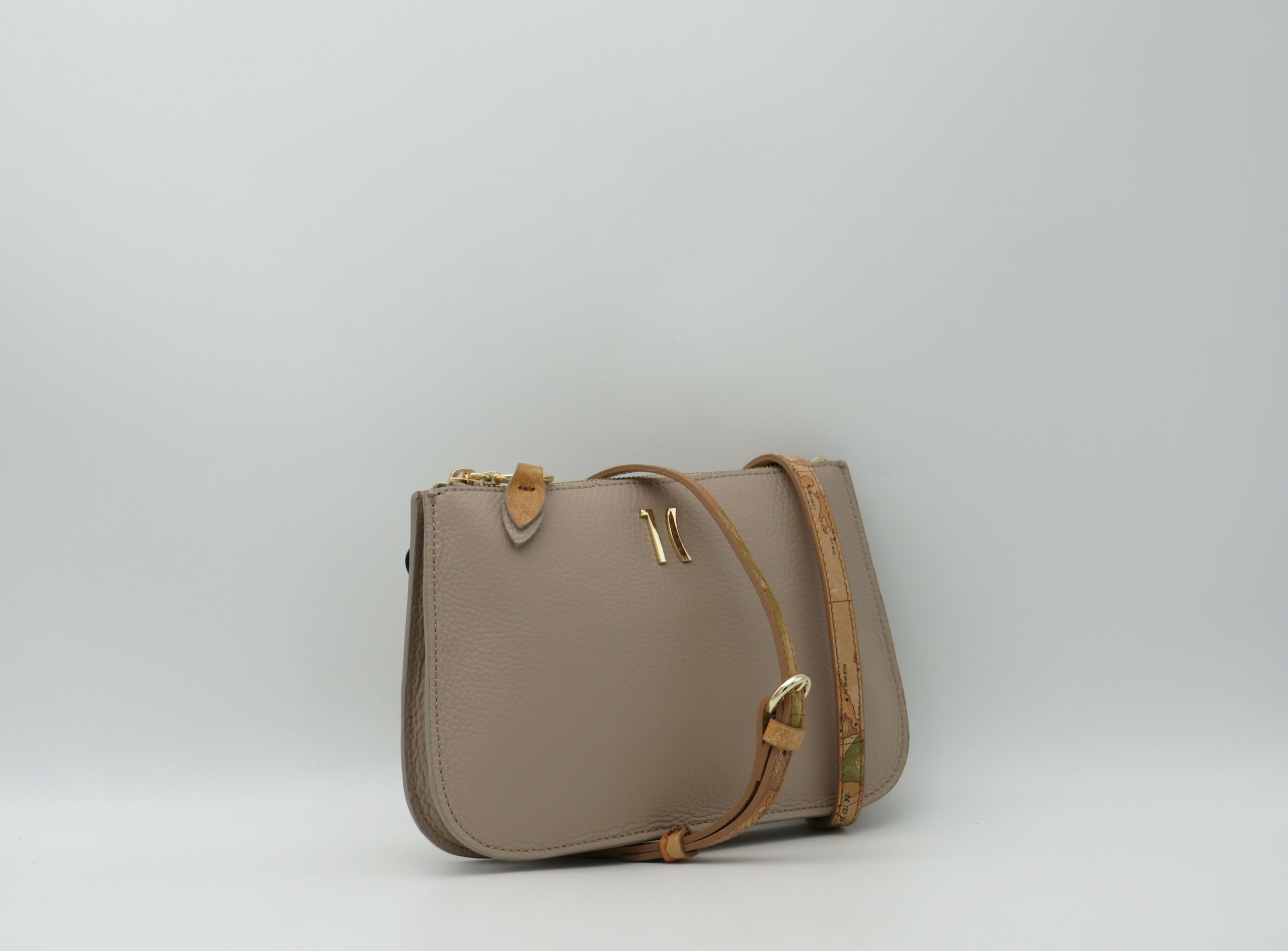 ALVIERO MARTINI 1’CLASSE TRACOLLA MINI IN PELLE MARTELLATA TAUPE E GEO