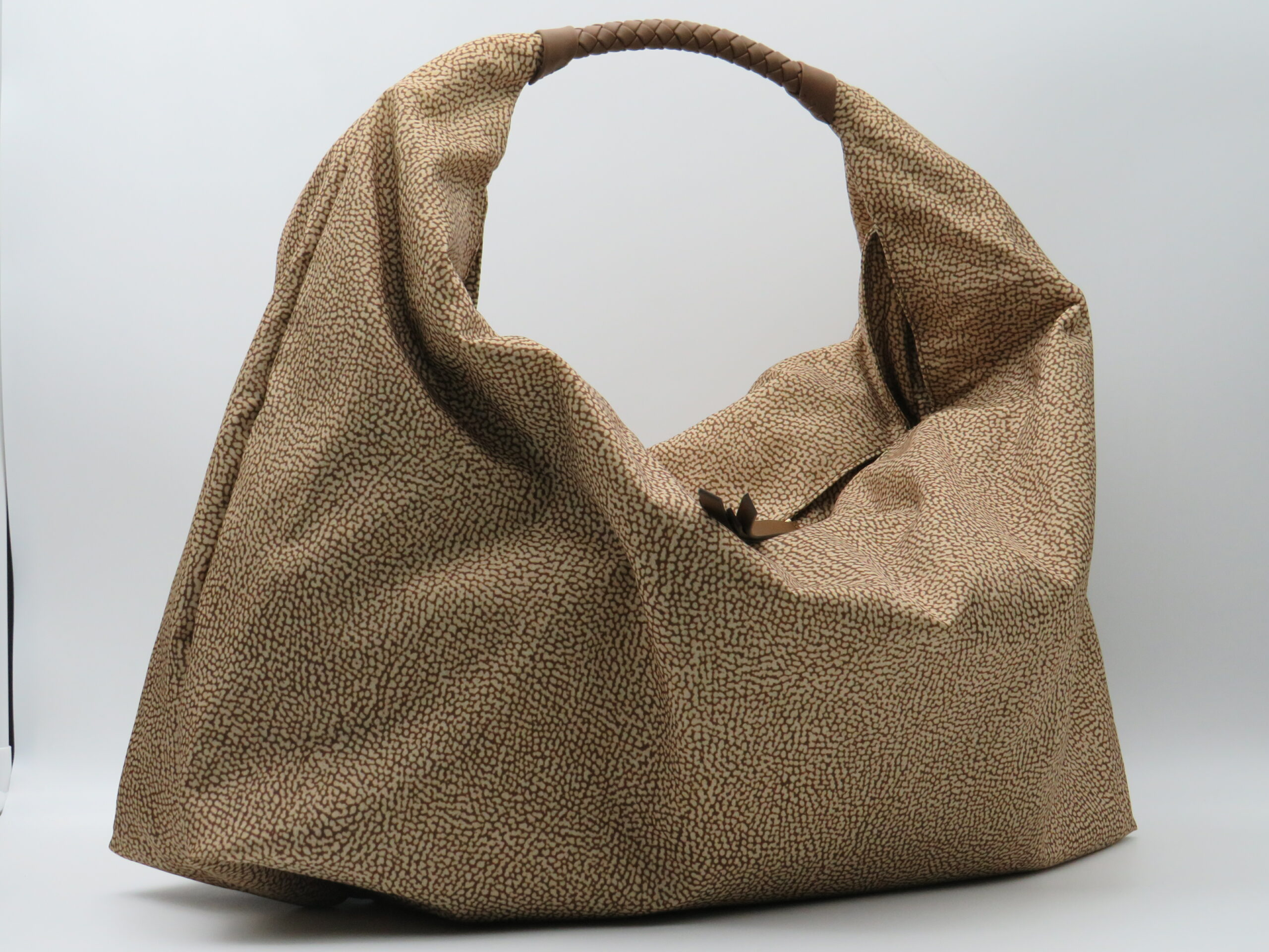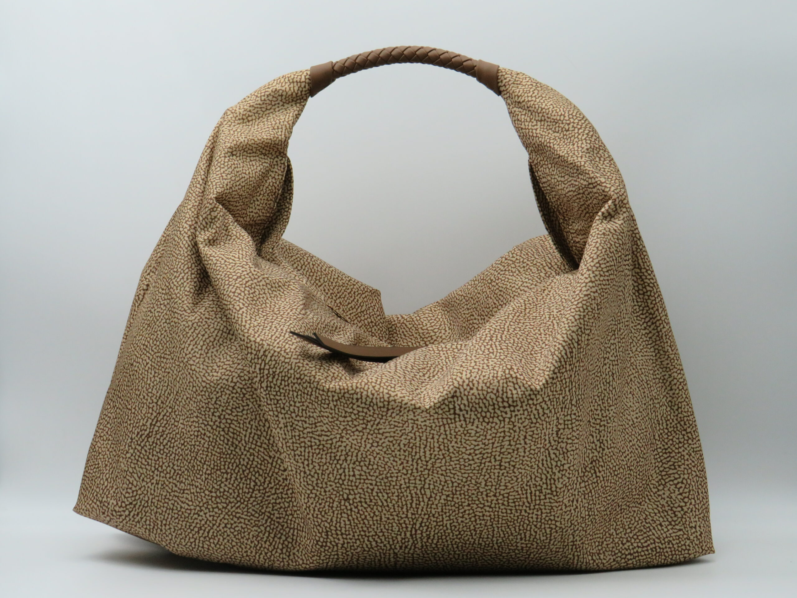 BORBONESE HOBOBAG GRANDE MANICO IN PELLE E JET NOCCIOLA