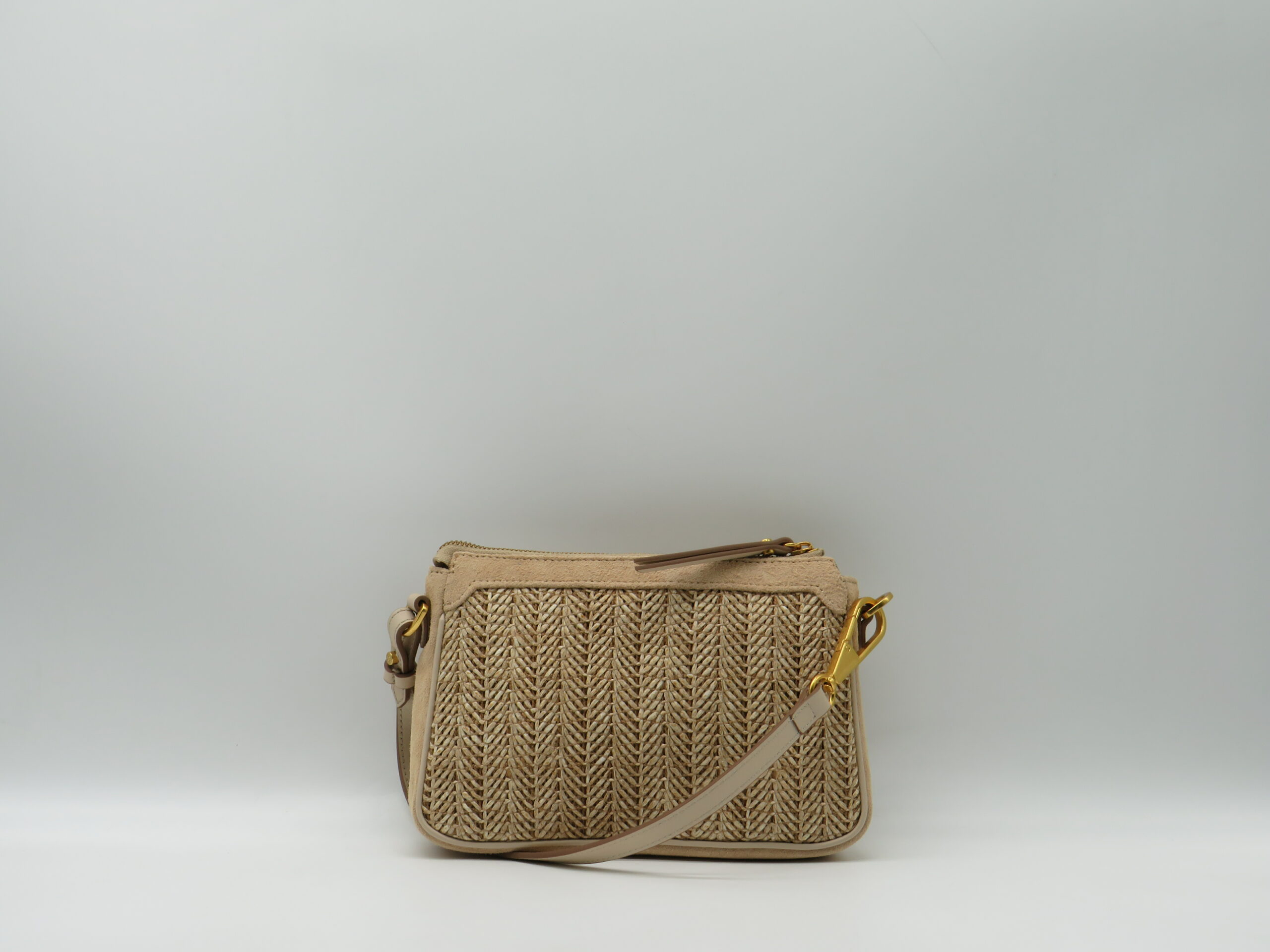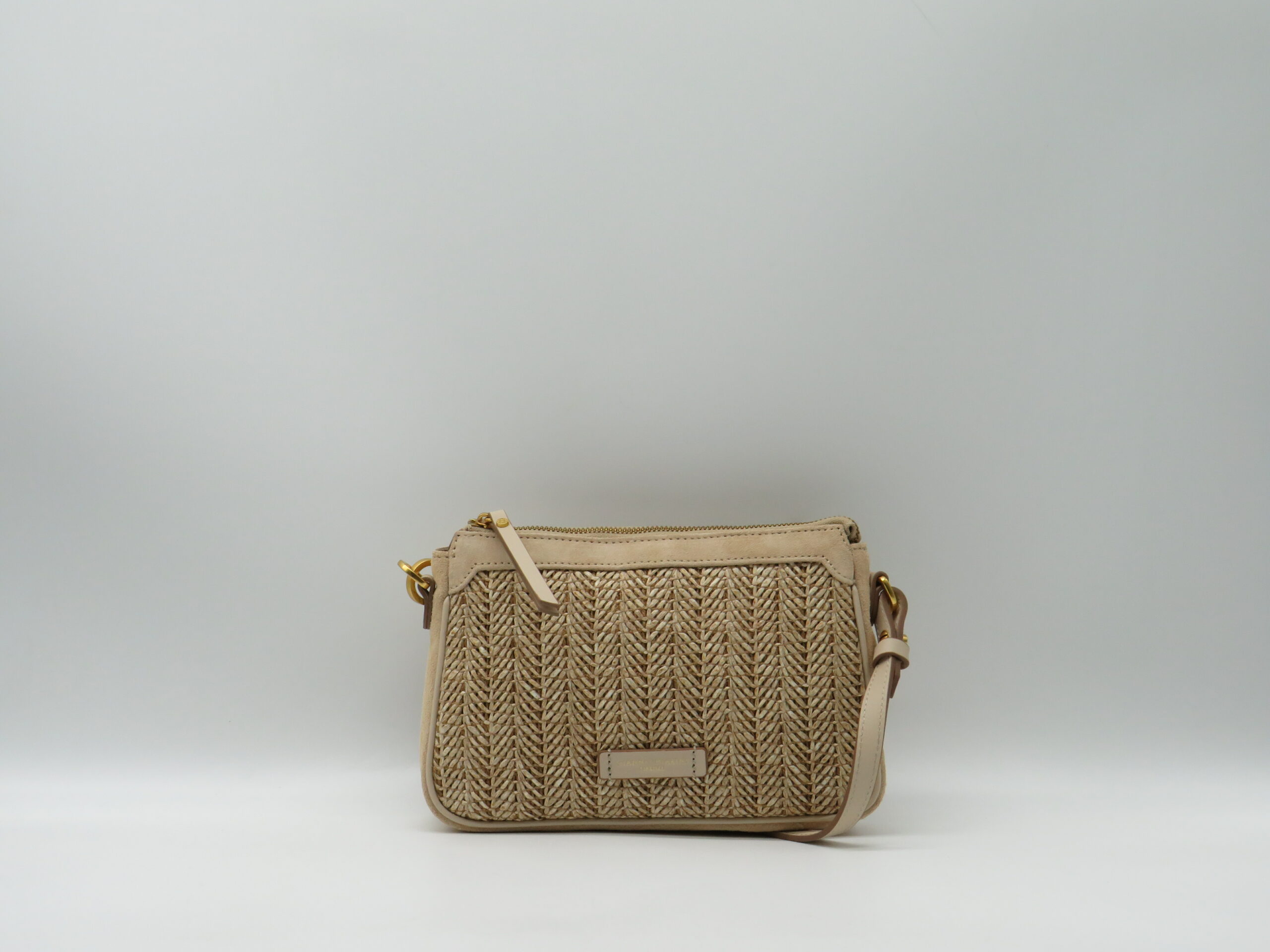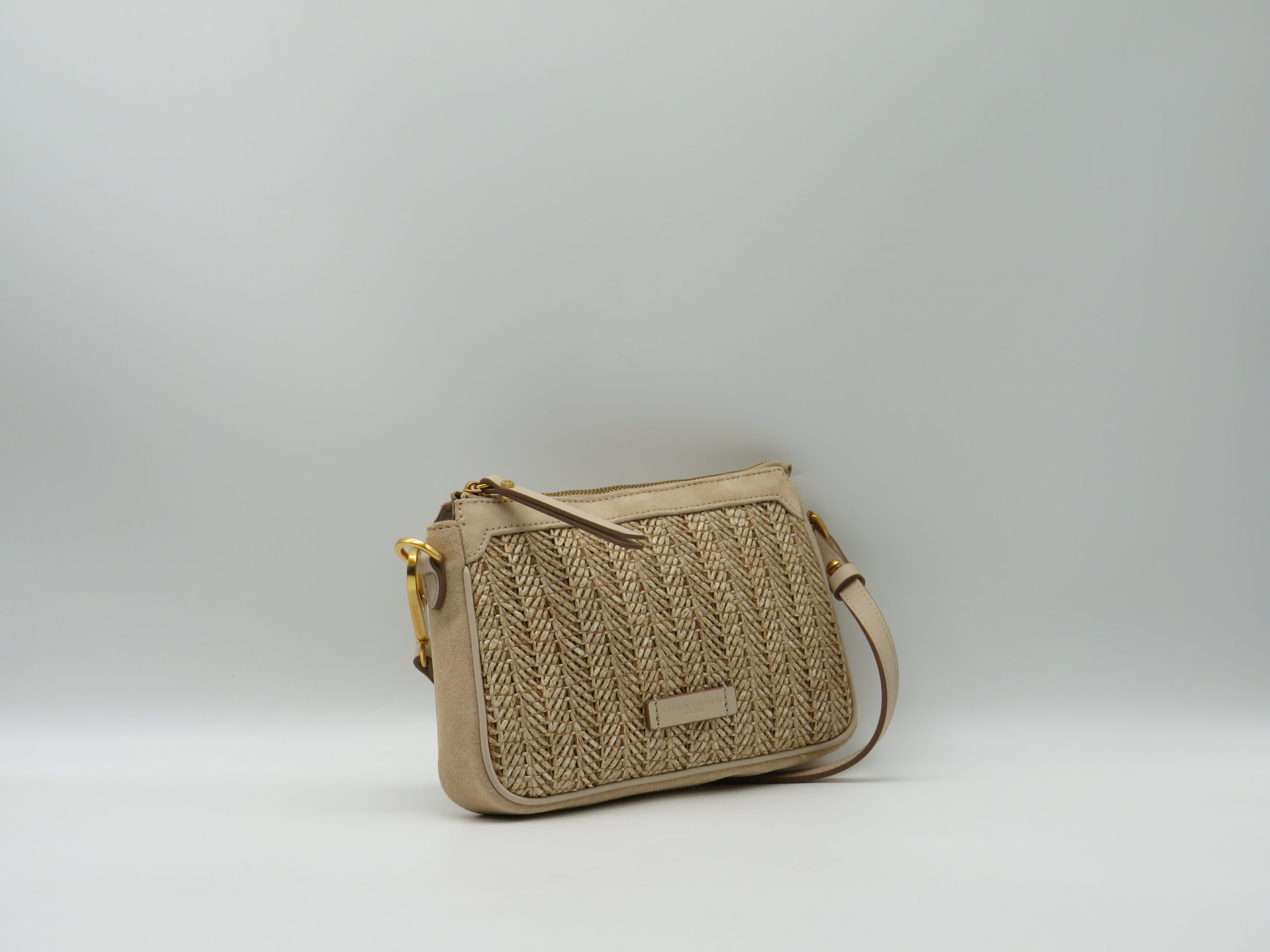 GIANNI CHIARINI SOTTOBRACCIO/TRACOLLA MINI IN PAGLIA E CAMOSCIO SABBIA
