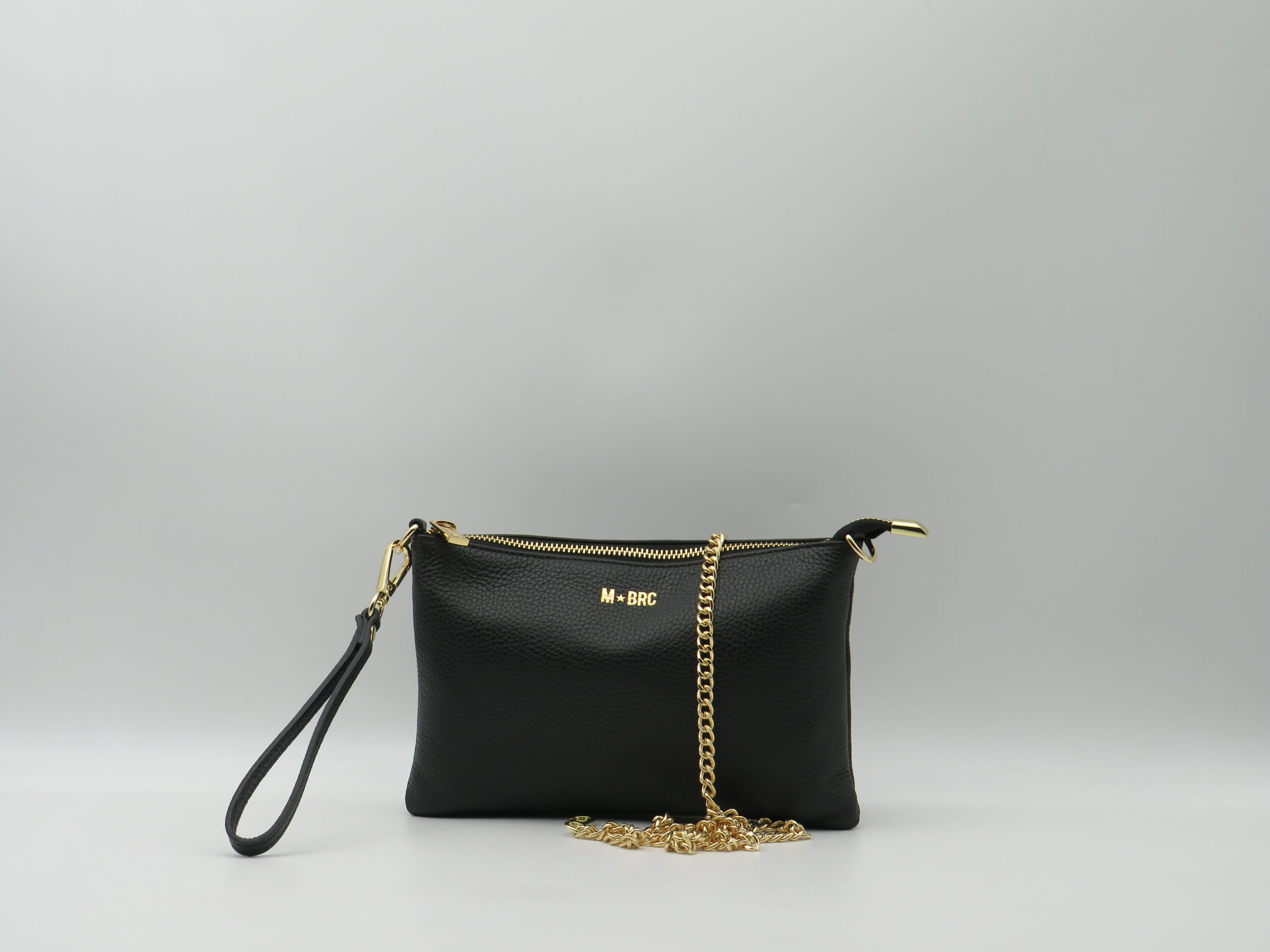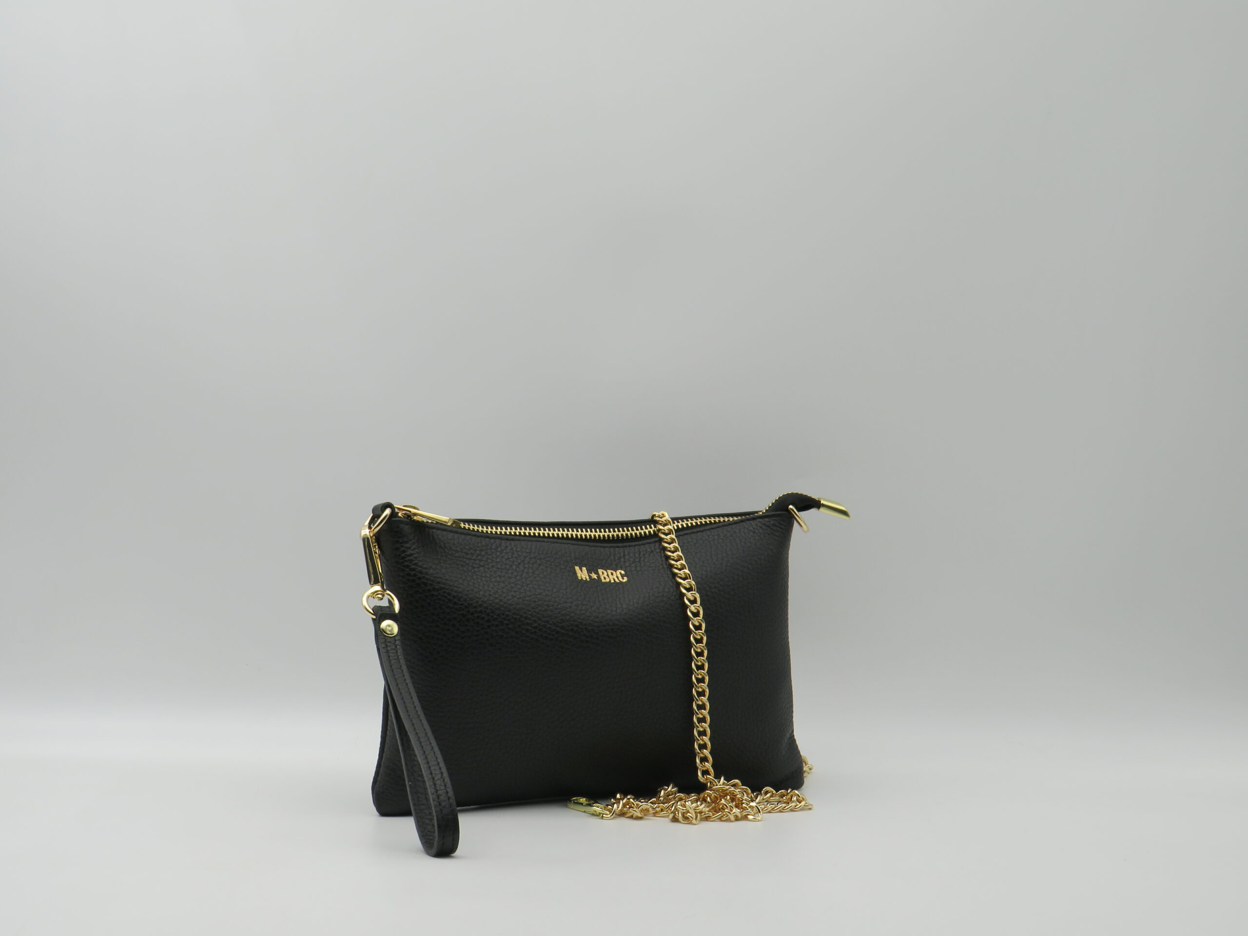 M-BRC MASSIMO BRACCIALINI POLSIERA PIATTA CON TRACOLLA IN PELLE NERA