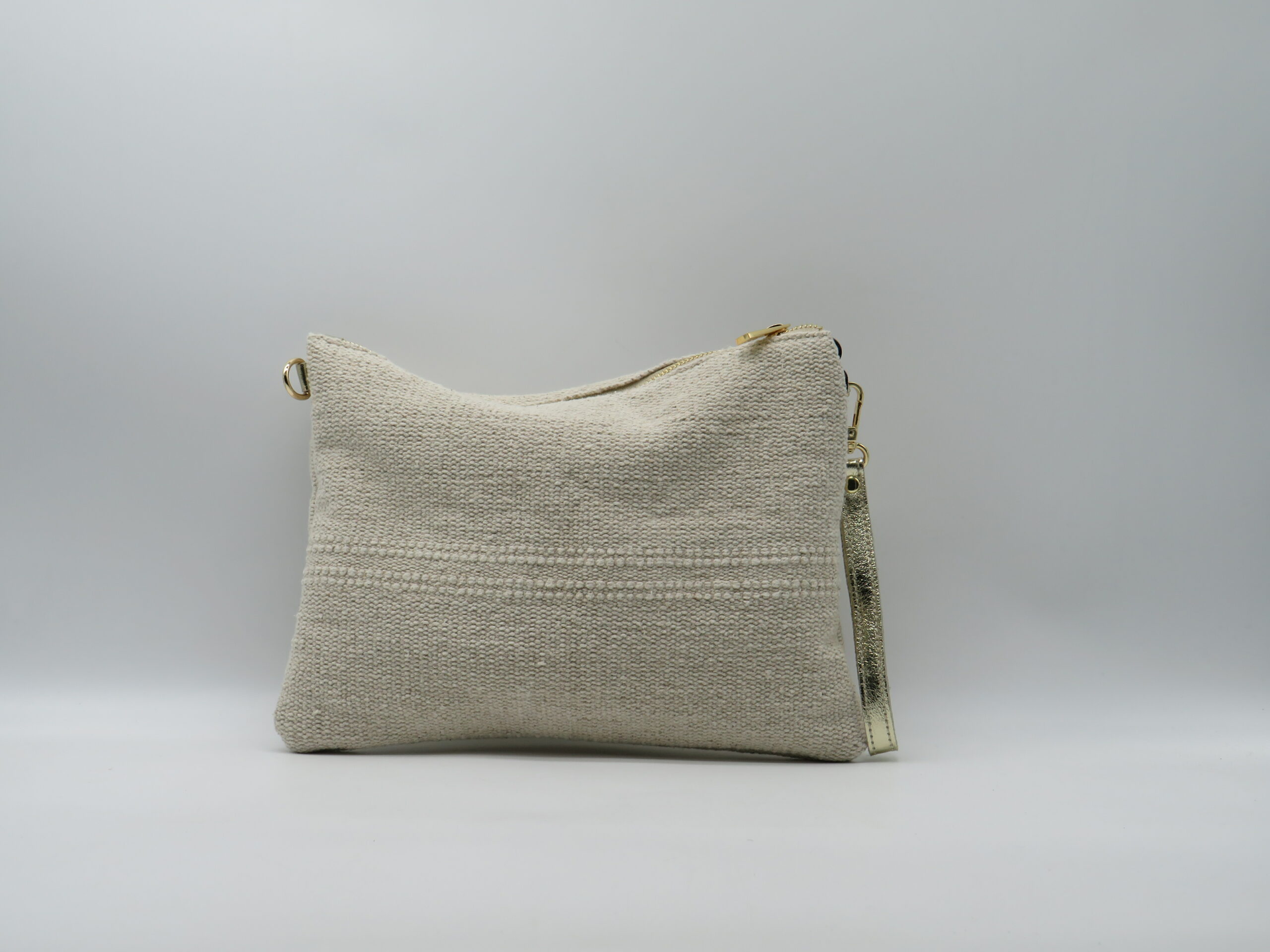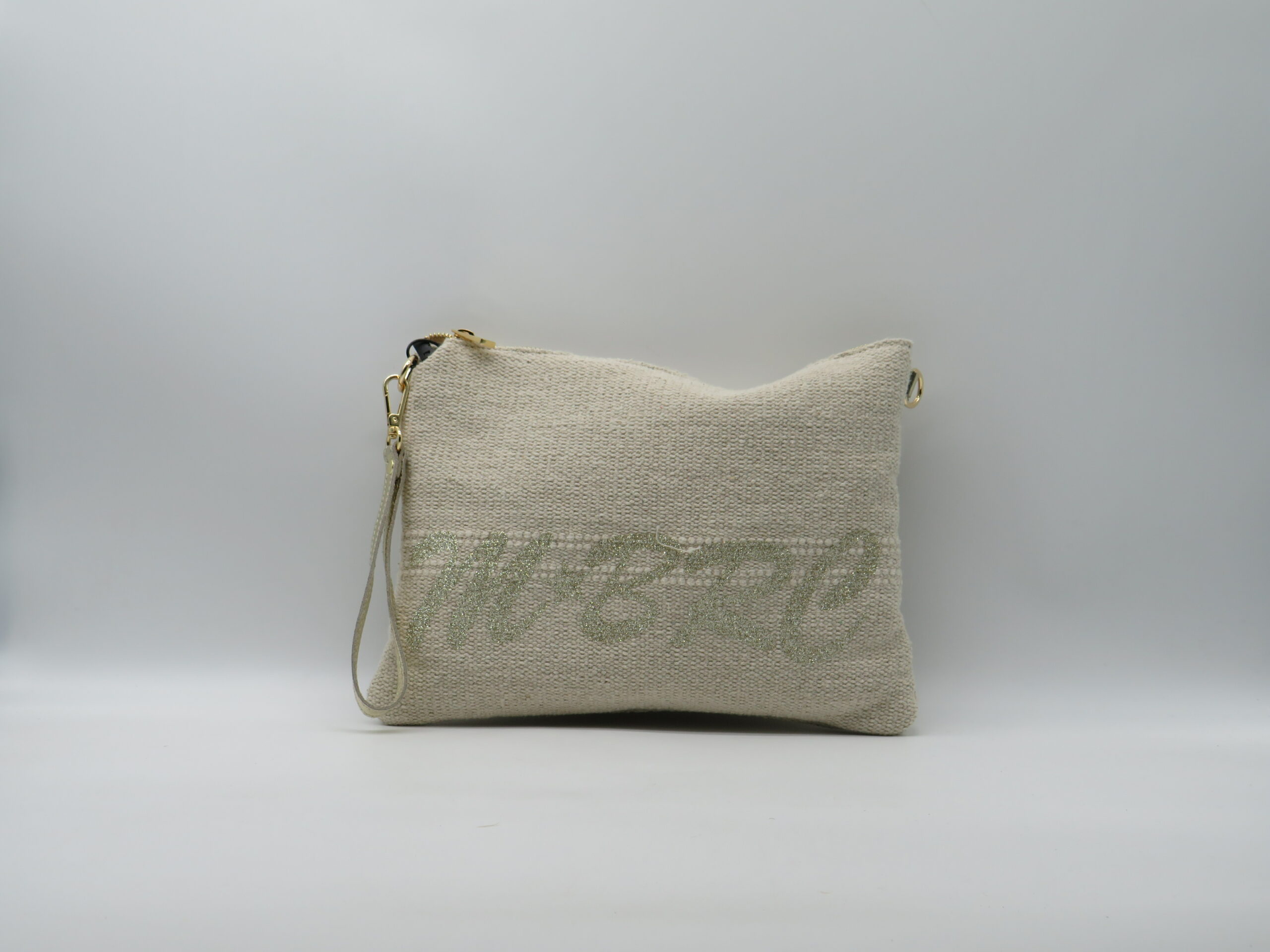 M-BRC MASSIMO BRACCIALINI POLSIERA/TRACOLLA TESSUTO ECRU’ LOGO GLITTER
